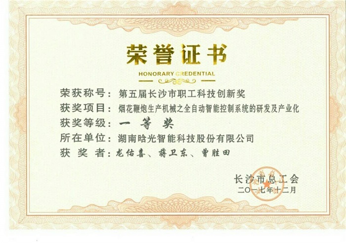 根據(jù)長沙市總工會長工發(fā)〔2017〕5 號文件《長沙市總工會關 于開展第五屆長沙市職工科技創(chuàng)新獎評選及展示活動的通知》的精神,經(jīng)基層工會推薦和專家評審,華智科技生物技術有限公司 鄭秀婷等人完成的《SNP 分子標記開發(fā)》等5 個項目榮獲一等獎。湖南湘電長沙水泵有限公司張鐵等人完成的《電動循環(huán)水泵》等 20 個項目榮獲二等獎,廣汽三菱汽車有限公司楊德亮等人完成的 《一種涂膠膠槍加熱裝置》等30 個榮獲三等獎。授予五個一等獎 的第一完成人鄭秀婷、黃愷、戴煜、楊先樂、龍佑喜五位同志“長沙市五一勞動獎章”榮譽稱號。